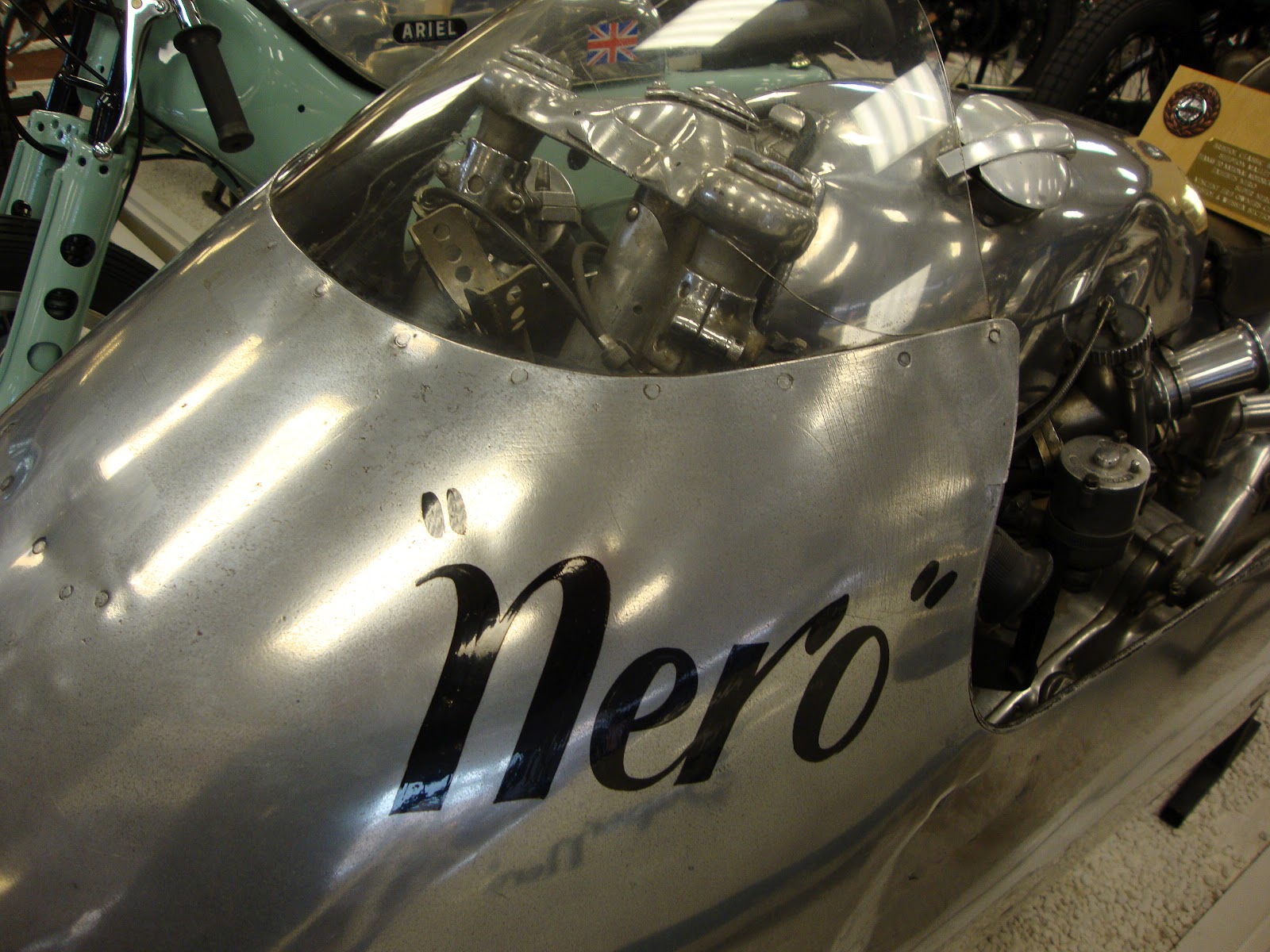 had to nip down to birmingham today to pick up the rear wheel for the loveless boxer twin project, on the drive down dangerous revealed that he had never been to the national motorcycle museum, less than four miles away from where we are picking the wheel up from, be rude not too wouldn't it? i had visited the museum many times before the fire in 2003 that destroyed many of the original hall's and exhibit's, brilliant that many of the bikes have been restored to as 'before fire' condition, i really couldn't take it all in on one visit, all of the british motorcycle's produced are here, my only critisism is that they are packed in too tight, please, if you get the chance, visit this place and support their effort's to keep the legend's alive, i can't post all the photo's i took, as you know, my main interest lies in the competition machines, please be patient, i've got load's of photo's to post of this amazing place.......